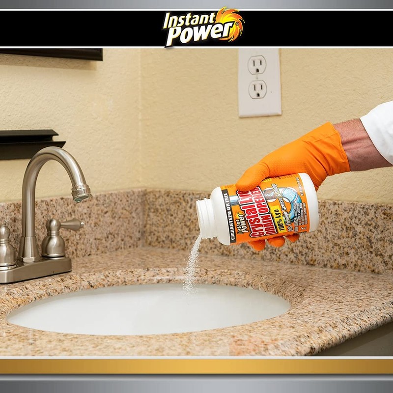 Instant Power Instant Power Crystal Lye Drain Opener, Lye Sodium Hydroxide, Unclogs Bathroom and Kitchen Sinks, Drains, Shower Pipes 1 Lb