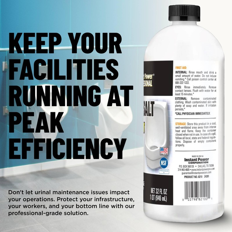 Instant Power Professional Urinal Salt Remover - Helps with Uric Salt Buildup, Dissolves Urine Salt, Urinal Drain Cleaner for Regular and Waterless Urinals, Safe on all Toilet Pipes - 32 fl oz