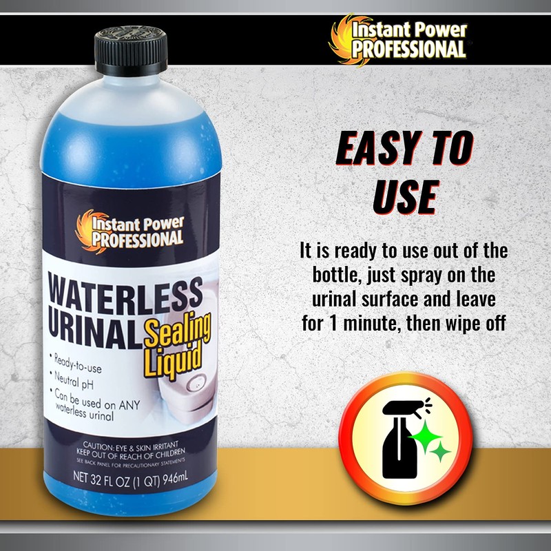Instant Power Professional Waterless Urinal Sealing Liquid – Cleaner and Deodorizer, Ready to Use, Neutral pH, 32 Fl Oz
