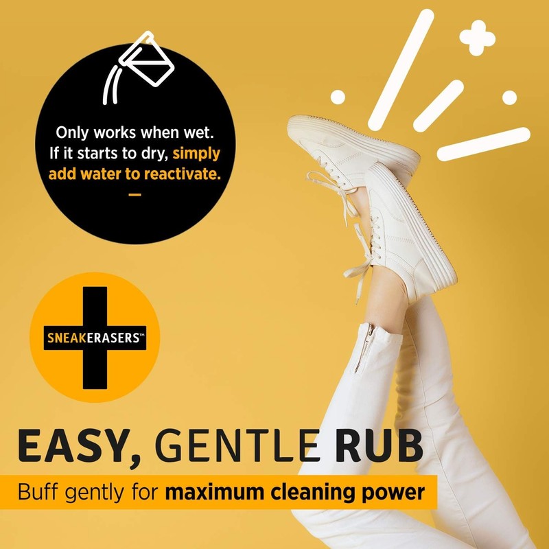 - ✨ POWERFUL MICRO PARTICLES SneakERASERS are more than just an ordinary trainer cleaning kit or white shoe polish. With powerful microparticles, dirt and stains are effortlessly eliminated.