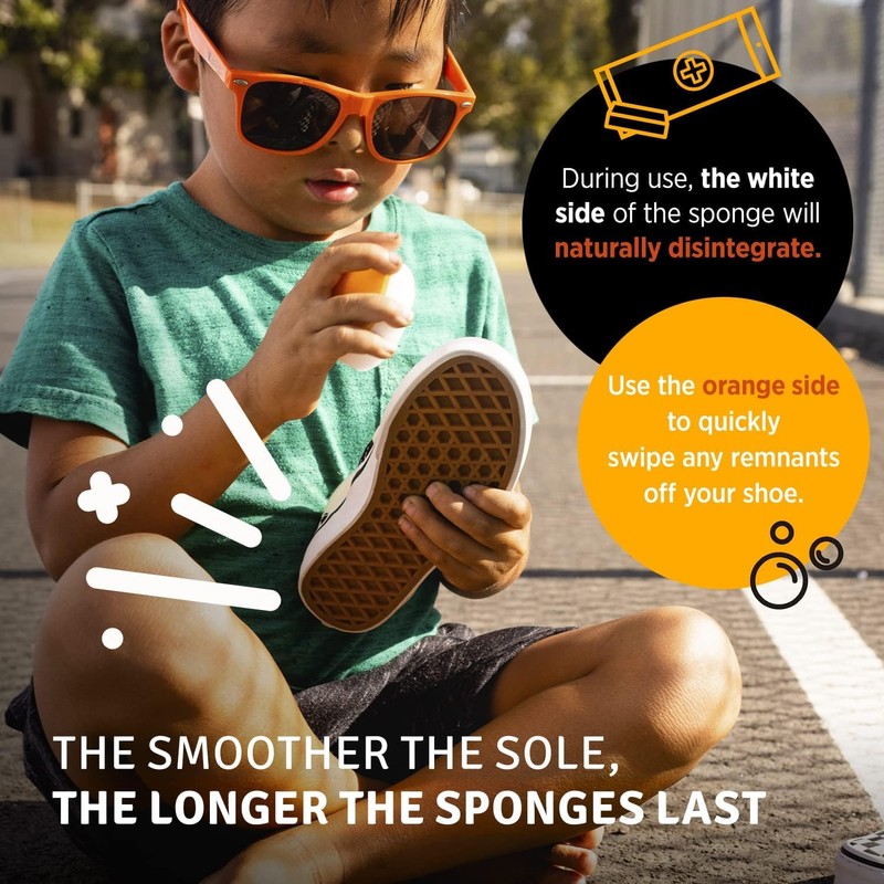 - Great for Smooth White Soles - The smoother the sole, the longer the sponges last; During use, the white side of the sponge will naturally disintegrate; Use the orange side to quickly swipe away any remnants off your shoe