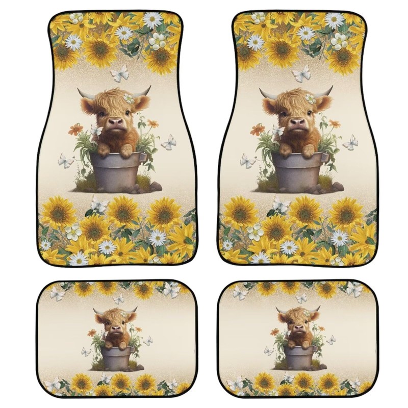 INSTANTARTS Highland Cow Sunflower Car Foot Mats 4 Piece Non-Slip Rubber Floor Mats Washable Front and Rear Auto Protective Mats Universal Auto Accessories