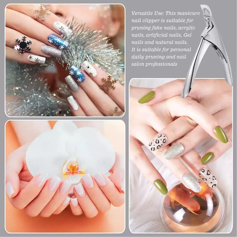 INSTUMAX® Acrylic False Nail Tip Cutter Clipper Nail Silver with Spring Manicure Cutter