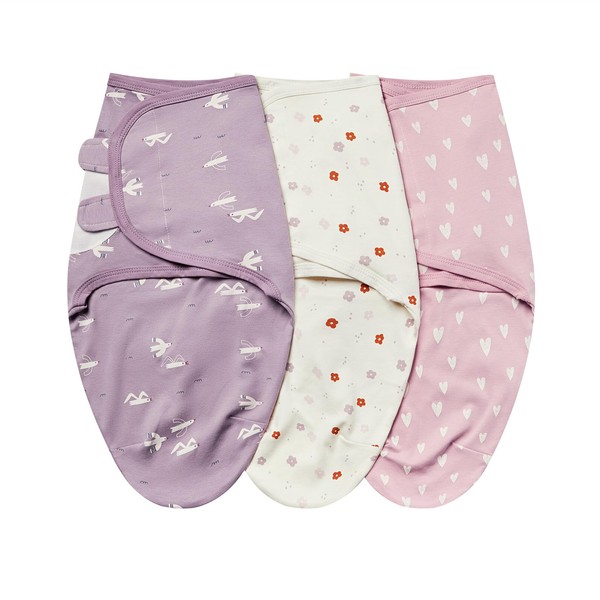 insular Baby Swaddle Wrap, Frazada Cobijas, Manta para Recién Nacidos y Bebés, Juego de Pañales Ajustables para Niños y Niñas, Saco de Dormir de Algodón Suave, Paquete de 3 (Gaviota, Mediano (3-6 m))