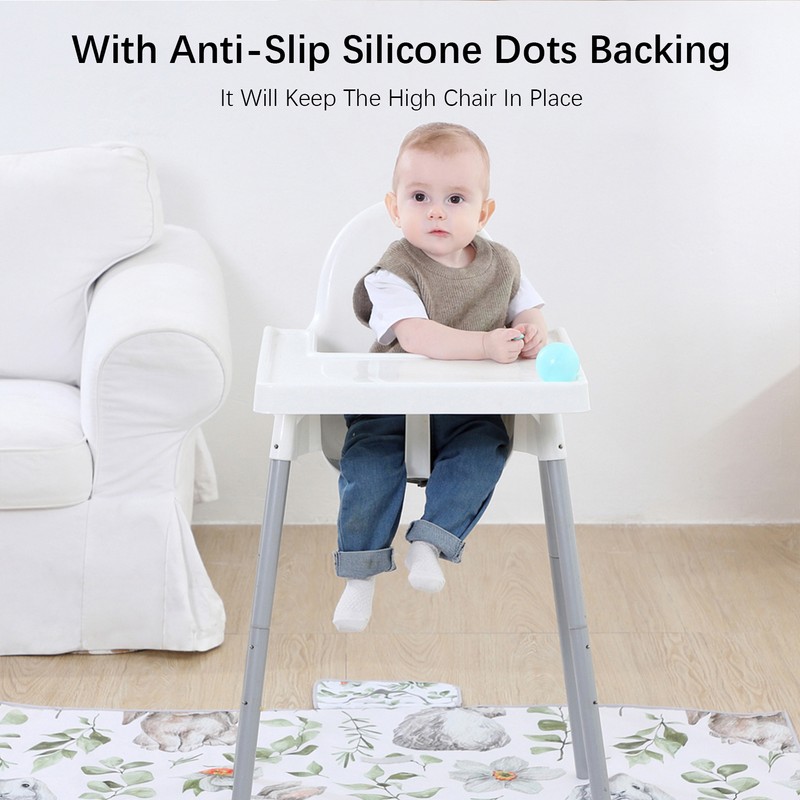 【Anti-Slip】The multi-use baby play mat features anti-slip silicone dots backing that keeps the high chair in place, ensuring your baby's safety during meal times.