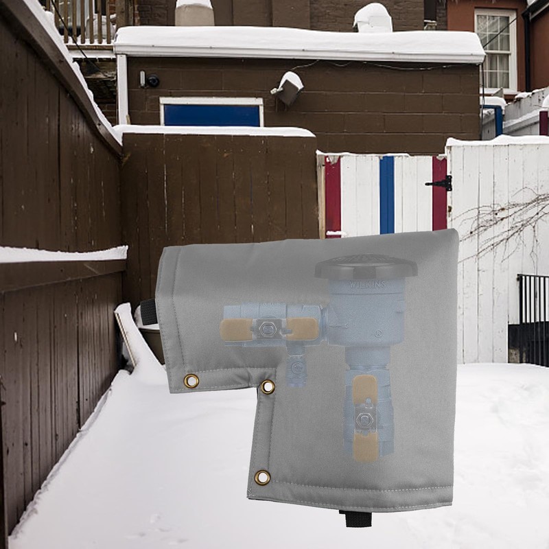 - 【5 Layers Design Winterizing& Waterproof Backflow Valve Preventer Cover】Our Backflow Preventers Insulation Pouch Cover for Winter Pipe Freeze Protection is made of 1 Layer Waterproof Polyester fiber and2 Layers Cotton Insulation,2 Layers PE Silver Coated Cloth,5-layer stitching for max security, has both waterproof and insulation effect. soft and breathable enough which can protect the Faucet and Pipe from snow, frost, wind, dust.