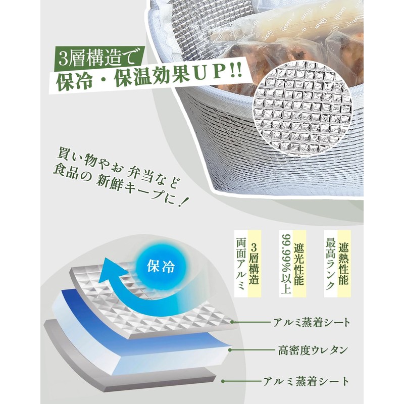- (Double-sided aluminum layer for better cold insulation and heat retention) The AMZHOOZ thermal insulated bag is made of double-sided aluminum vapor-deposited film and thick polyethylene foam, so it can effectively block outside temperature changes. Mesh pockets add coolant to your body for even better cooling