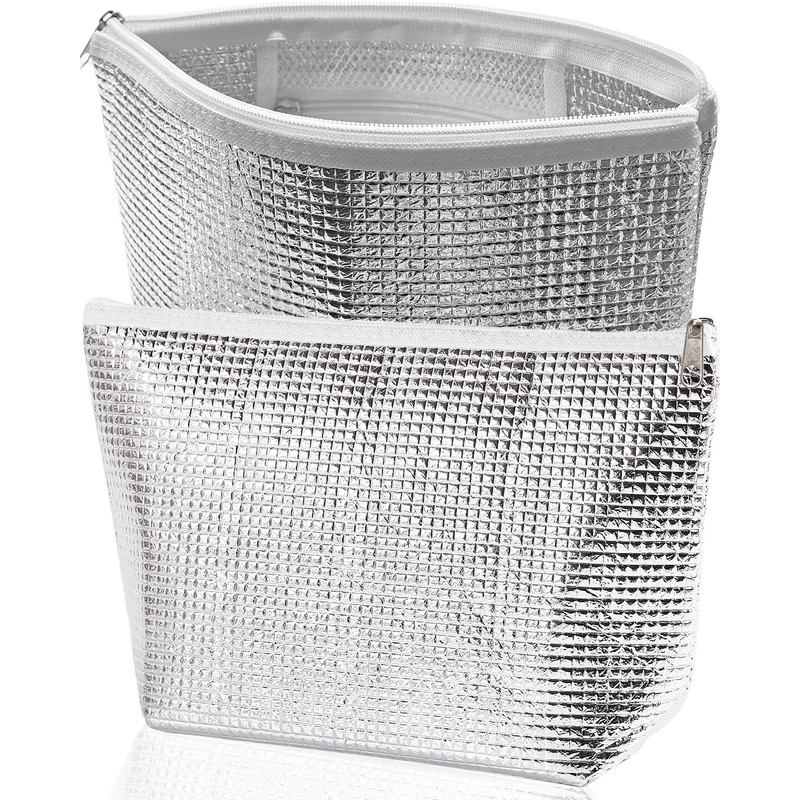 Insulated Bag, Mini Cooling Pouch, Small, Aluminum Inner Bag, Bento Bag, Ice Pack Pocket, Zipper Included, Lunch Goods, Heat Prevention, Set of 2