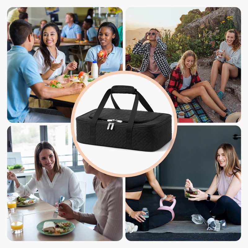- 【Convenient to Use】The portable food warmer bag and food carrier for containers has wide openings and zipper closures, making it easy to pack. It comes with two carry handles for convenient transport. There’s also a large exterior zipper pocket for storing utensils, keeping them easily accessible.