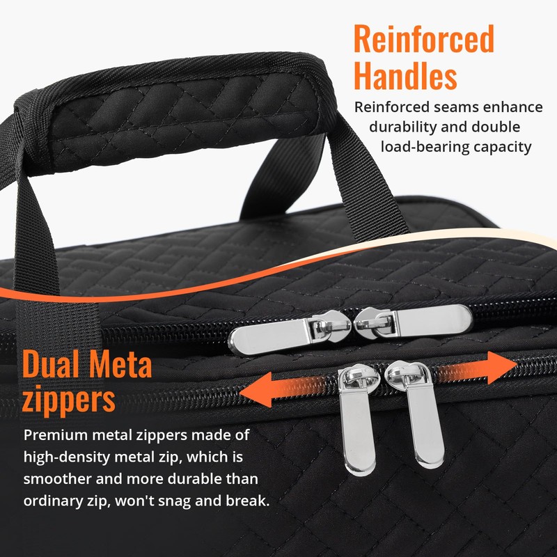 - 【Convenient Design】This insulated casserole carrier features a two-way zipper design that provides easy access to your items and minimizes the risk of spills. The dual handles with padded wrap make it easy to carry, You can comfortably carry the product without worrying about items falling out or getting damaged. Our zip on this Casserole Carriers for Hot or Cold Food is made of high-density metal zip, which is smoother and more durable than ordinary zip, won't snag and break.