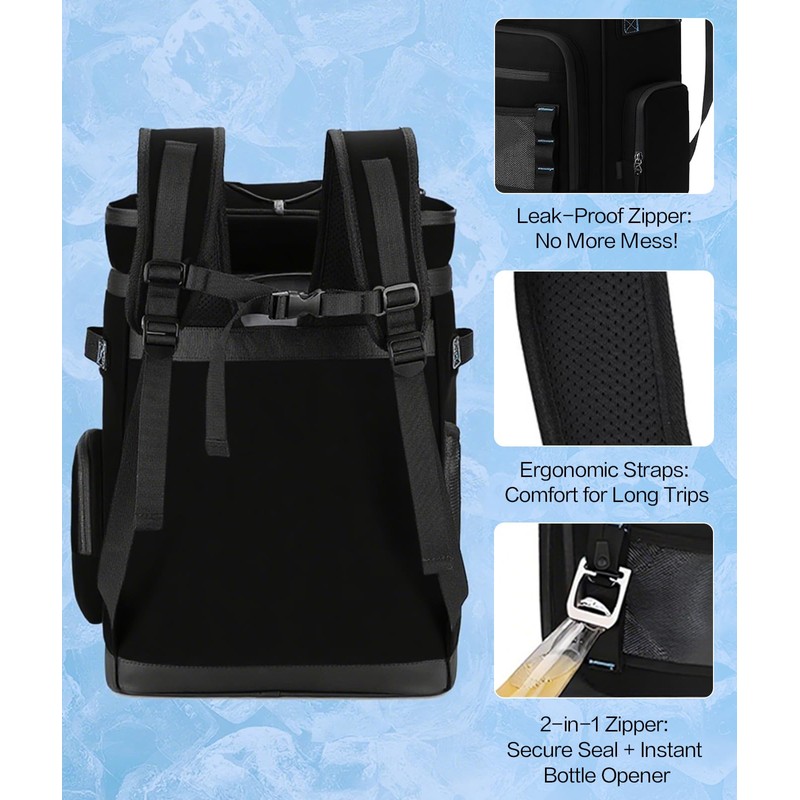- 3-Layer Insulated Cooler Backpack - 24+ Hour Ice Retention:Premium heat-reflective outer shell + Deep Freeze interior + leak-proof barrier keeps contents cold for over 24 hours (tested in 90°F/32°C). Perfect for camping, beach trips, tailgating and outdoor adventures.