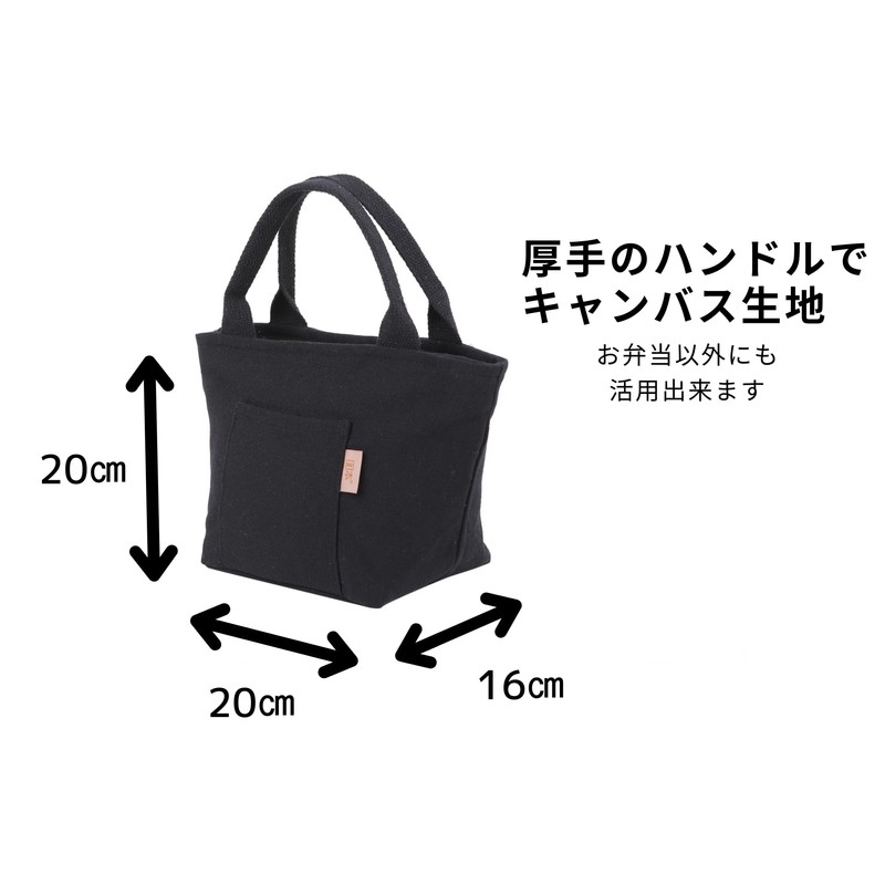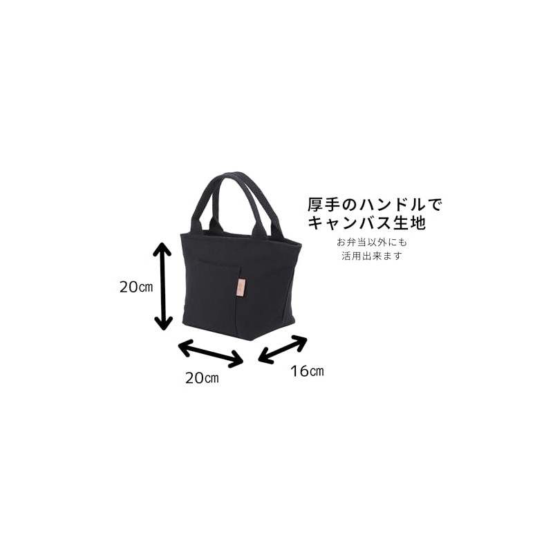 Insulated Lunch Bag, Bento Bag, 7.9 x 7.9 x 6.3 inches (20 x 20 x 16 cm), Black, Canvas Fabric