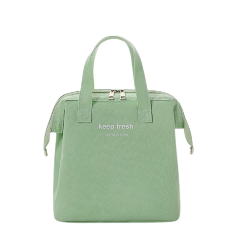 Insulated Lunch Bag, Bento Bag, 9.4 x 9.1 x 5.5 inches (24 x 23 x 14 cm), Green with Zipper