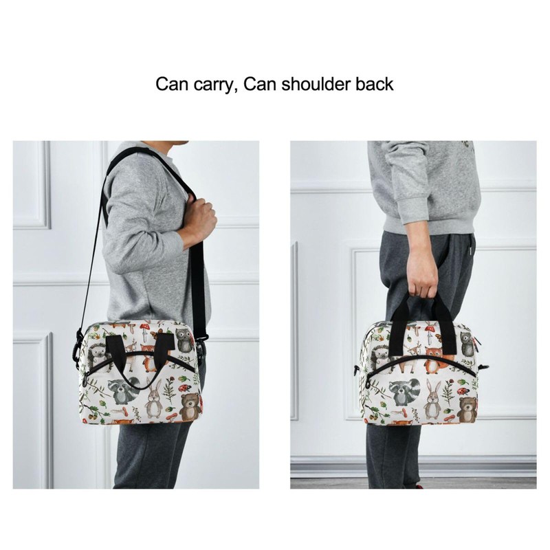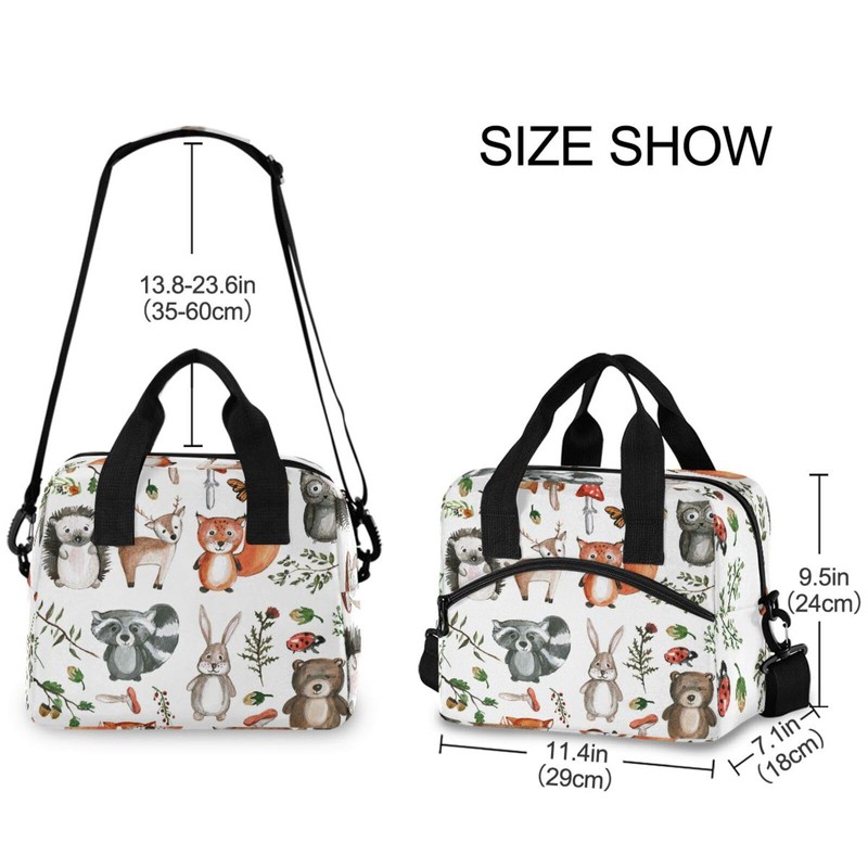 Insulated Lunch Bag Cute Woodland Animals Lunch Tote Reusable Cooler Lunchbox Handbag Bag Container with Adjustable Shoulder Strap