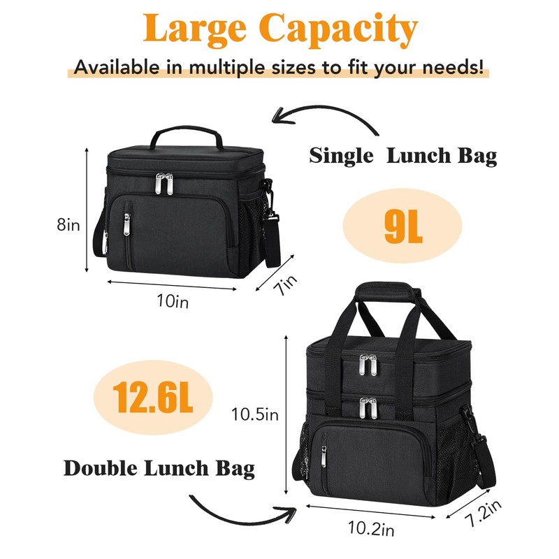 - EASY TO CARRY - This thermal lunch bag provides two convenient carrying options: an adjustable, padded shoulder strap for comfort during commutes or trips, and a sturdy handle for easy grab-and-go use. Whether you’re heading to work, a picnic, camping, or traveling, this versatile lunch bag is designed to fit your busy lifestyle.
