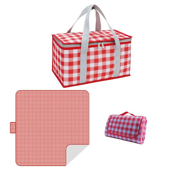 Insulated Picnic Baskets, 35 x 20 x 20 cm Large Capacity Picnic Bag with Picnic Blanket, Portable Waterproof Beach Bags for Hot or Cold Outdoor Activities, Red