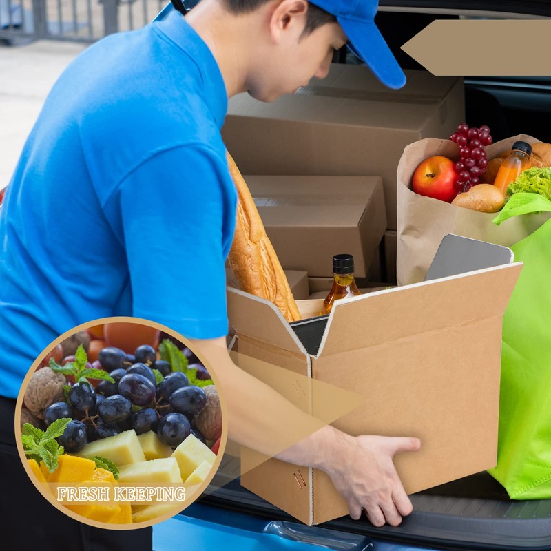 - Reliable Material: the insulated box is made of quality carton material, the inside is equipped with an insulation bag, reliable, safe, and not easy to break; The carton box is lined with reflective metallized film, which will maintain temperature during transportation, and can provide a buffer for your food, bringing you a comfortable using experience