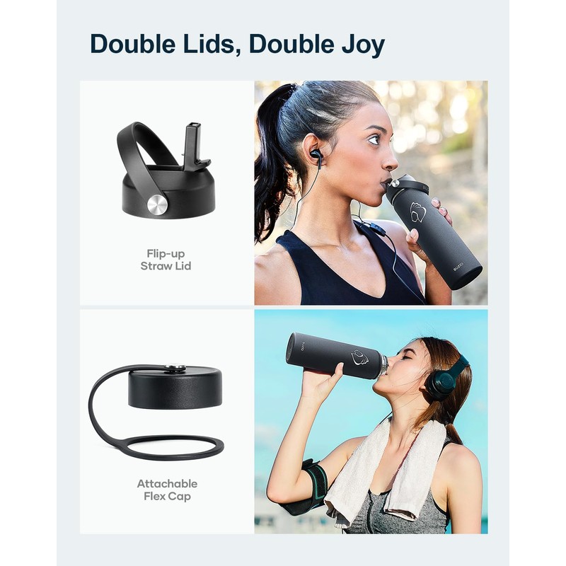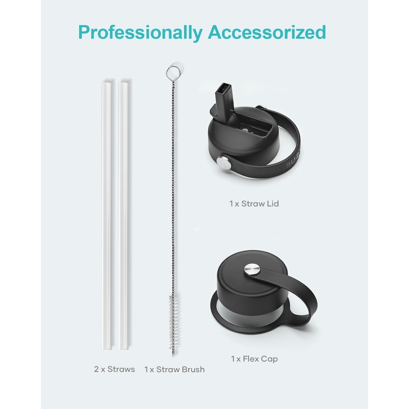 - 【WHAT YOU GET】: Included with the insulated water bottle are 2 lids (straw lid & flex lid), 2 reusable straws, and 1 straw cleaner. Our insulated water bottle is built to last, providing a sustainable alternative to single-use plastic bottles.