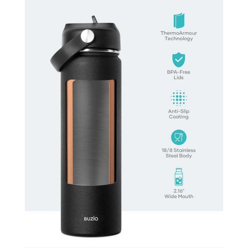 - 【KEEPS COLD 48 HRS & HOT 24 HRS】: With unique double wall vacuum insulated TempArmour technology, this Buzio insulated water bottle with straw keeps beverage cold up to 48 hours and hot up to 24 hours.