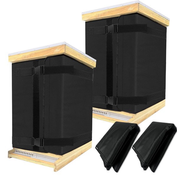 Insulated Winter Beehive Wrap - Fits 8 & 10 Frame Beehives, Waterproof & Windproof, 3-Layer Protection, Adjustable Cover for Cozy Hives - Black.2pcs