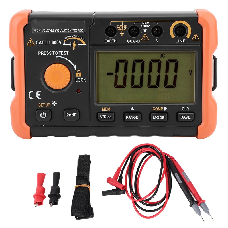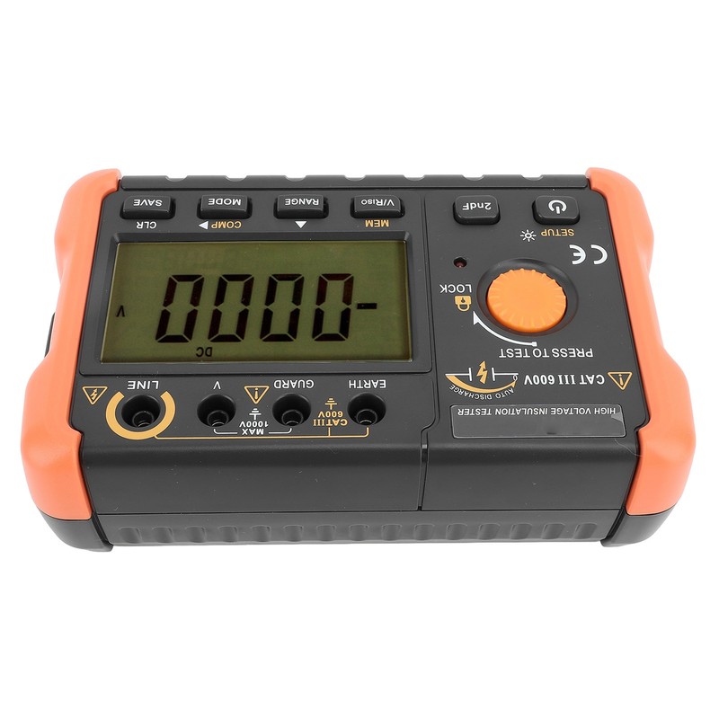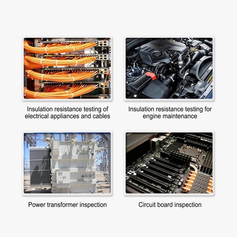 1、TECHNICAL PARAMETERS: Insulation tester megohmmeter insulation test range from 0.00 to 100GΩ, short circuit current is about 1.3mA, you can use with confidence 2、DIGITAL DISPLAY: The insulation tester is automatically discharged after testing, and the insulation test voltage value and insulation resistance measurement value are displayed simultaneously 3、VARIOUS FUNCTIONS: Insulation resistance meter support PI(polarization index), DAR(absorption ratio) automatic measurement, as well as continuous test function and set test time function 4、STORAGE CAPACITY: Insulation resistance tester can store up to 100 measurement data and use panel calibration technology, guarantee accurate measurements 5、USEFUL AND PRACTICAL: Insulation Tester Megohmmeter has stable performance, easy operation and reliability, which is an ideal tool for electrical equipment maintenance, testing and inspection