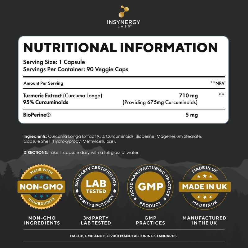 - The Ultra Premium Turmeric Supplement C Insynergy Labs are proud to bring to market the UK's first Gold Standard Turmeric Extract Complex. One capsule contains an impressive 675 mg of pure turmeric curcumin extract. This is the equivalent of 15 capsules from other brands.