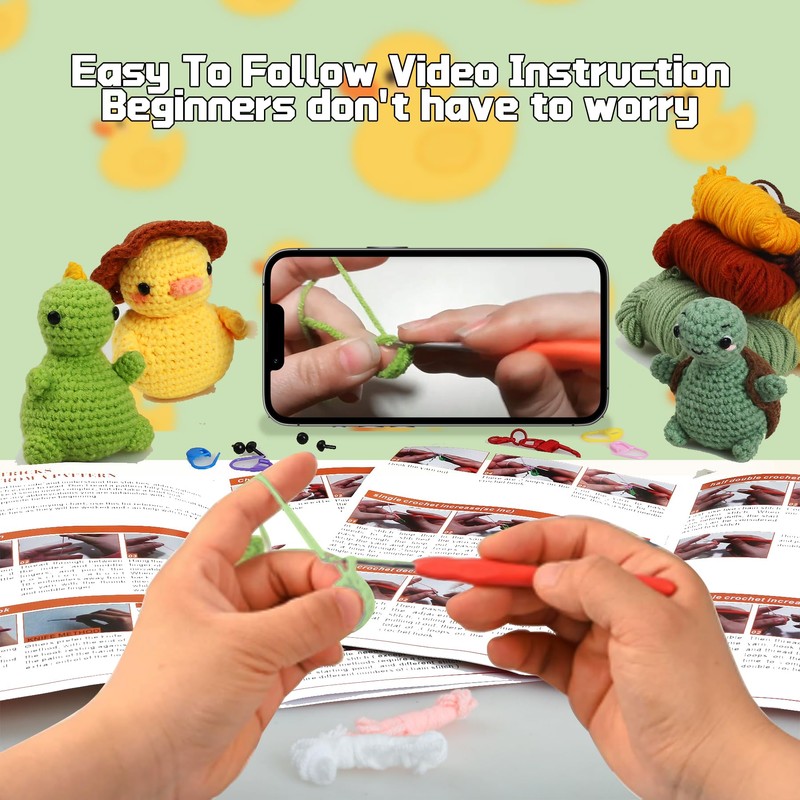 - PREMIUM YARN DURABLE&SOFT: INSYOHO’s learn to crochet kits for adults beginner feature 3 yarn praised for its softness, fade resistance, and split-free texture. Unlike scratchy budget yarns, this medium-weight material glides smoothly on hooks, letting beginners see stitches clearly and fix mistakes easily. The tight twist prevents fraying, ensuring your turtle stays intact for years. Rave about the yarn’s vibrant duck that pop on shelves or desks