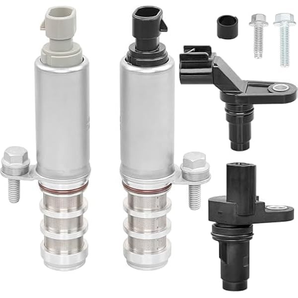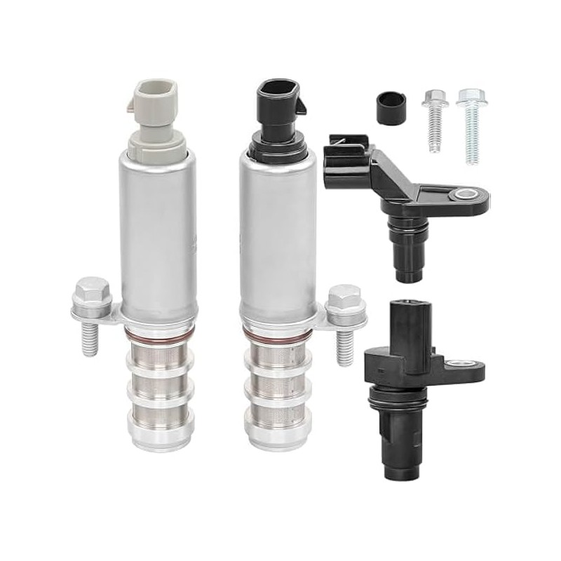 Intake and Exhaust Camshaft Position Actuator VVT Solenoid Valve Kit with Camshaft Crankshaft Engine Sensor- Compatible with Chevy,GMC,Pontiac,Saturn,Buick- Replace# 12655420,12655421,12577245,907-799