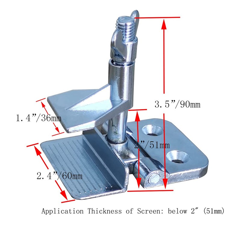 - β γπππππππ πππππππγOur hinge clamps can swing to a maximum of 90 degrees. The clamps are very sturdy and will stay in the up position between jobs. Any screen frame with the thickness of Screen below 2" (51mm) can be used with these clamp.Thickness of Screen: below 2" (51mm). Height: 3.5" (90mm) Length of Clamp: 2.4" (60mm) Net Weight: 0.44Lb (0.2kg)