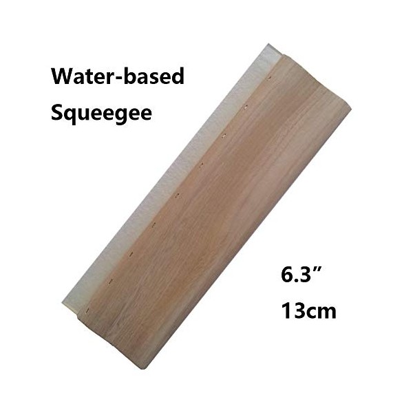 Squeegee is also called scraper, it is one kind of tool that used to scratch the ink on the screen to make it leak to the substrate.Squeegee is made by the combination of scratching strip and handle, rubber blade is inserted into the wood handle and stapled in position, then professionally sharpened after assembly. Use for both graphic and textile applications, for all hand printing and many machine applications. Features Built rugged of rubber blade and lumber handle Ergonomic style straight handle is designed for comfort Excellent abrasion and solvent resistance Items included: 6.3" (16cm) squeegee - 65 Durometer (007343) Mold by high heat and pressure ensures its durability Oiliness squeegee-75 durometers