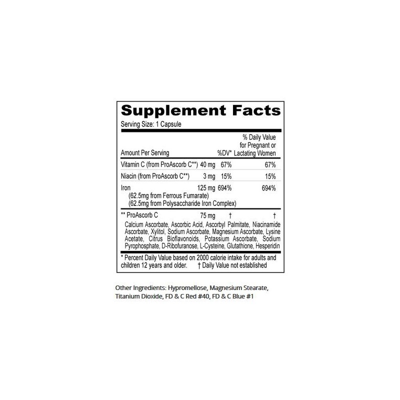 62.5 mg pf Ferrous Fumarate and 62.5 mg of Polysaccharide Iron Complex combined with Vitamin C and Master Antioxidant Glutathione make this iron supplement easy to absorb without nausea as compared with other brands containing Iron or Ferrous Sulfate.