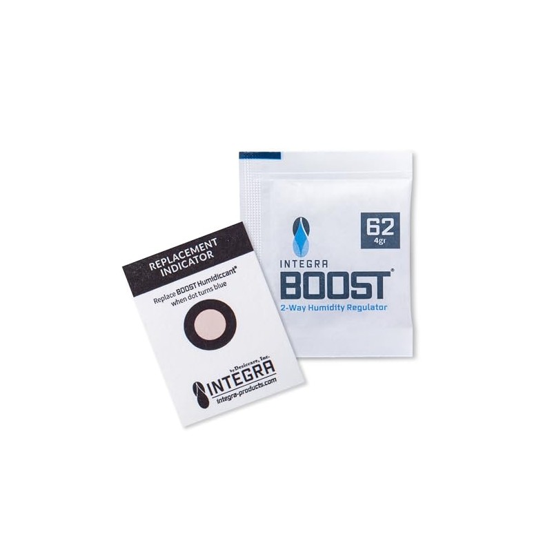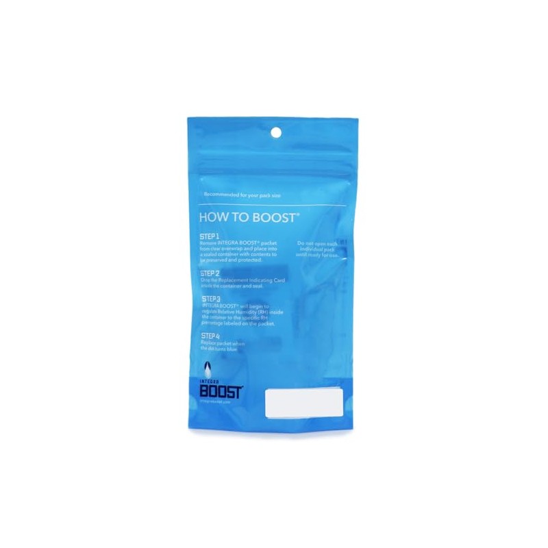 - 4-GRAM BOOST EFFICIENCY: Each 4 gram Integra Boost pack manages moisture for up to 14 grams of product, ideal for smaller storage. The pack includes 6 individually wrapped Boost Packs with Humidity Indicator Cards, packaged in a resealable blue bag.