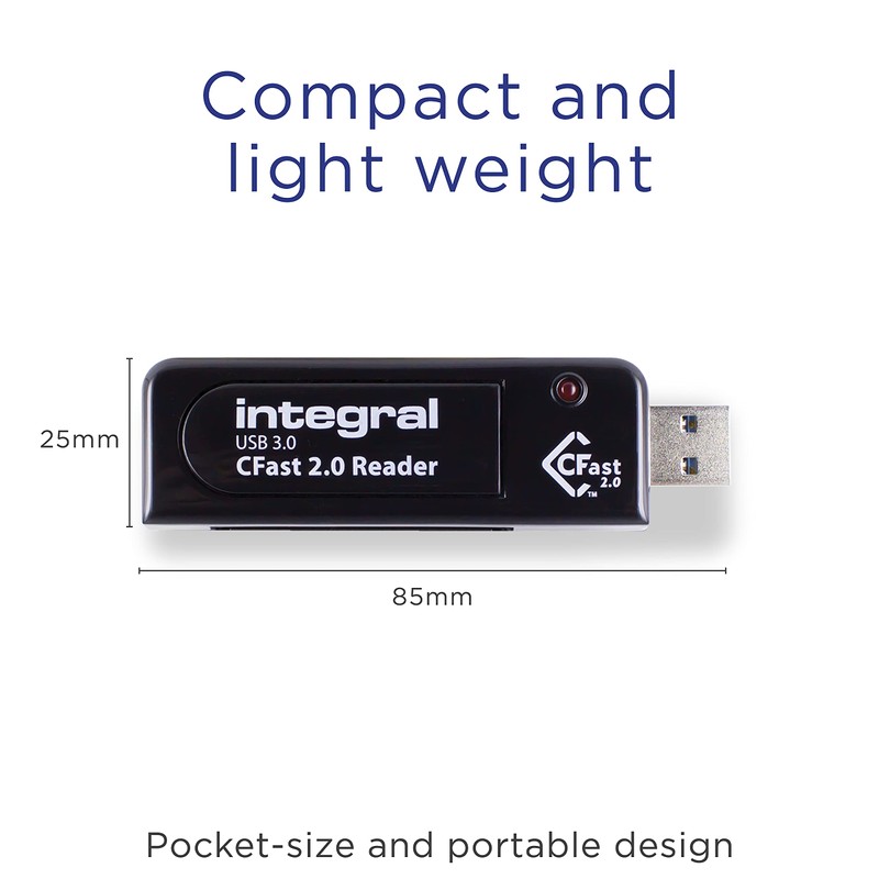 Integral Cfast 2.0 Super Speed USB 3.0 Memory Card Reader Adapter - Plug & Play, Lightning Fast File Access and Designed for 4K Videos, raw image transfers & post production processing