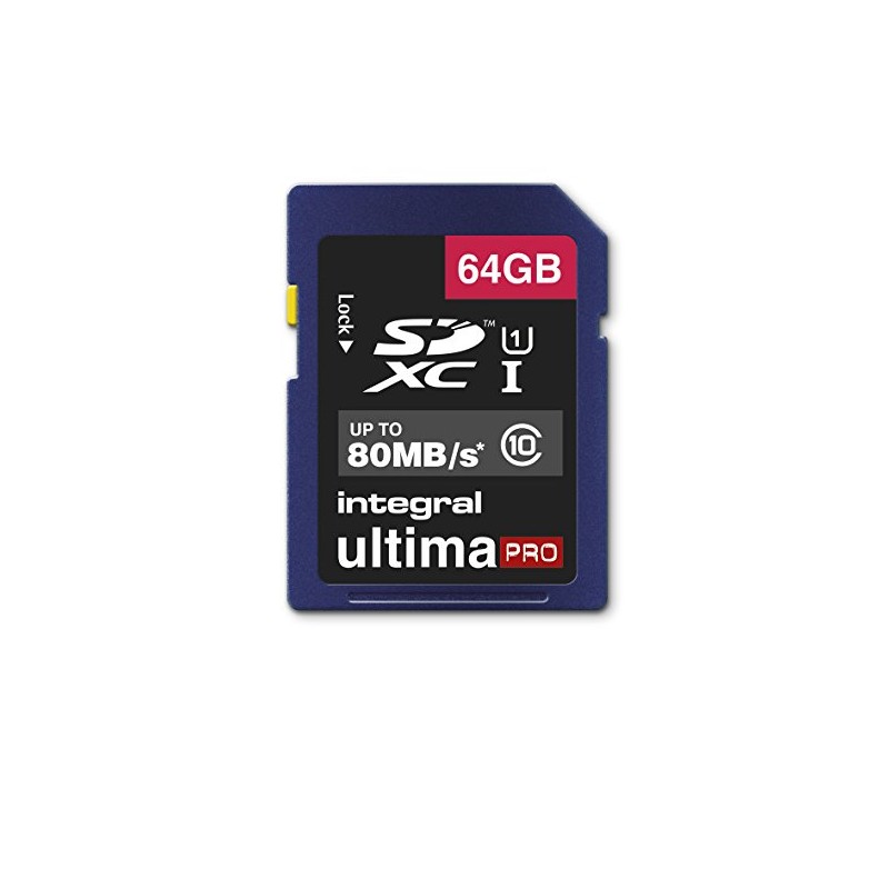 Integral INSDX64G10-80U1 UltimaPro 64 GB SDXC Class 10 Memory Card, up to 80 MB/s, U1 Rating
