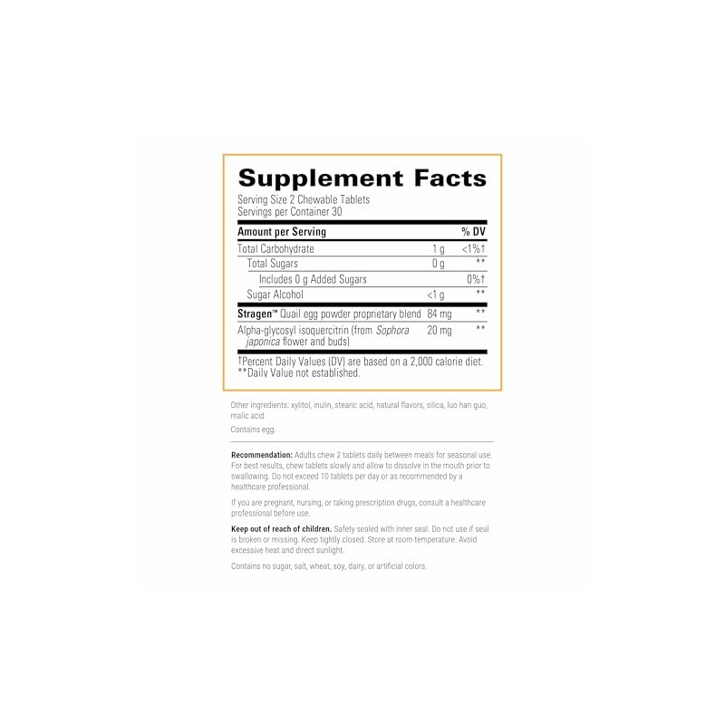 Integrative Therapeutics AllQlear - Suplemento de apoyo de temporada de acción rápida con huevo de codorniz y flavonoides* - Sabor a bayas - Sin gluten - Sin lácteos - 60 tabletas masticables