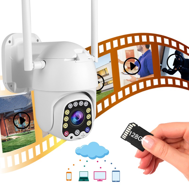 1、H.264 video coding, high compression ratio, good picture quality, support dynamic code rate control. 2、1 RJ45 Ethernet interface, 10/100m adaptive, support RTSP/DHCP and other network protocols. 3、Support remote control video, multiple simultaneous viewing, mirror image, motion detection alarm, video recording, alarm video and other functions. 4、Compatible with most NVR devices on the market. 5、12LED, dual light source(infrared light and white light), provides clear pictures. 6、Support PTZ rotate, support automatic tracking function. 7、Local storage can support up to 128G TF card (not included), support cloud storage 8、Wifi connection, remote monitoring, allowing you to monitor anytime and anywhere.