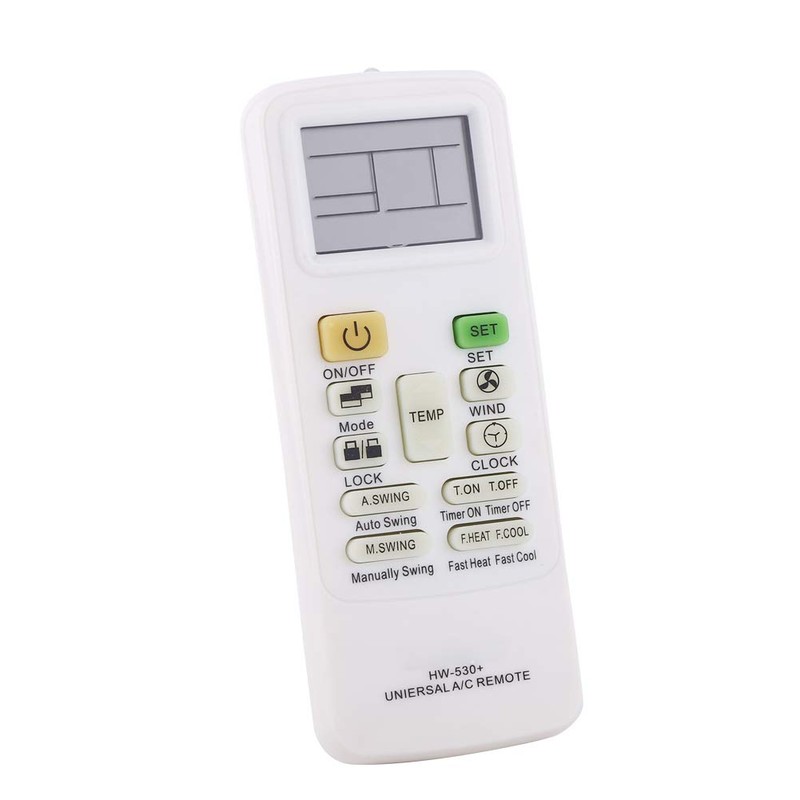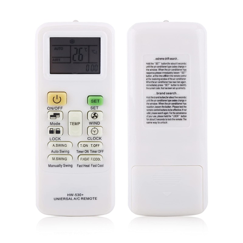 This remote control can control most air-conditioner of brands in the world. It has clock and timer functions, which is particularly convenient for daily use. It also has the function of manually swing or automatically swing for adaptable type of air-conditioners. This remote control with complete functions and comfortable touch will bring you enjoyment to the maximal extent.