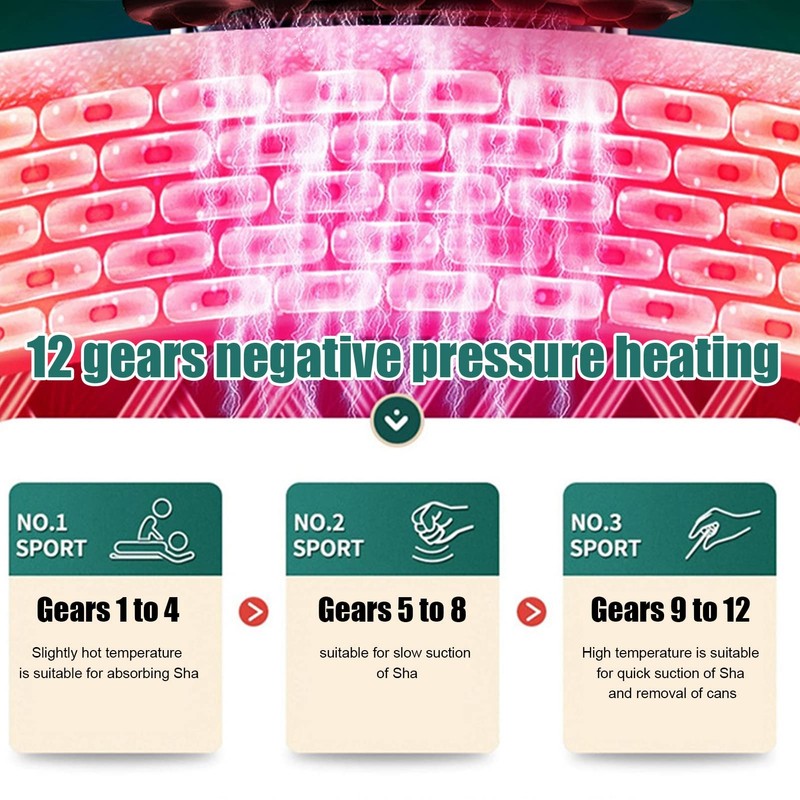 - Application: apply the essential oil to the desired body area before use and after absorbing the skin, pull the negative pressure on the pinion in one direction. Scraping each part is generally no more than 20 times, and the intensity ranges from light to heavy, from small to large.