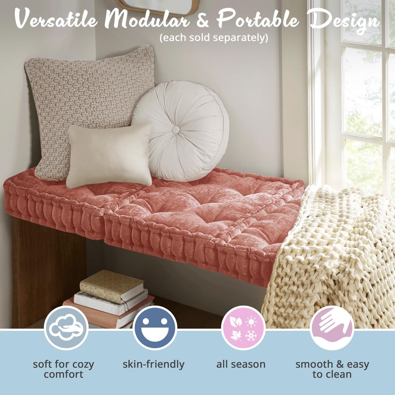 Intelligent Design Azza Floor Pillow, Large Seat Cushions for Adults, Floor Pillow for Meditation or Yoga, Lustrous Chenille Tufted, Scalloped Edges for Bench/Chair Cushion, 20"x20"x5", Dusty Peach