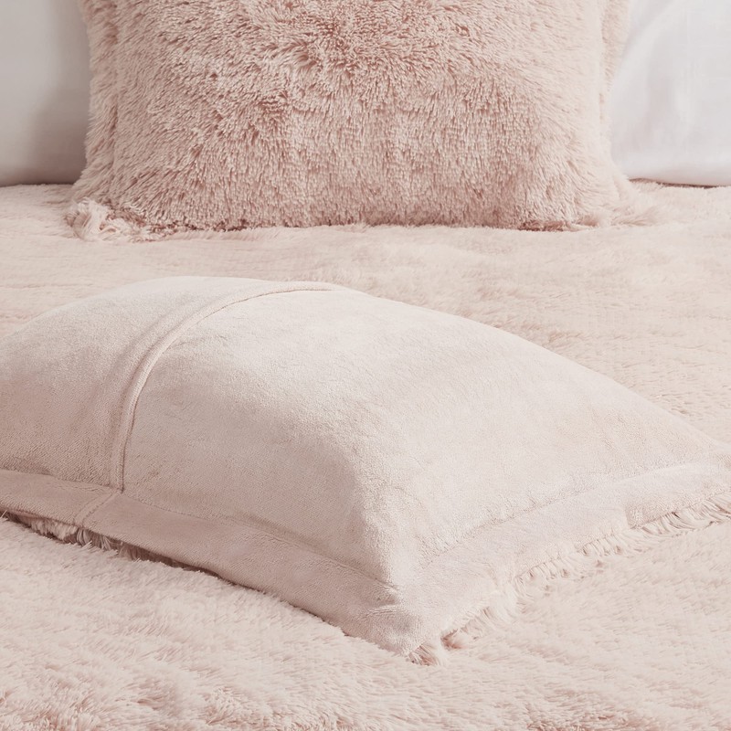 Intelligent Design Malea Shaggy Duvet with Quilted Box Design, Long Faux Fur Comforter Cover Cozy Bedding Set, Matching Shams, (Insert Not Included) Full/Queen, Blush 3 Piece, 90x90