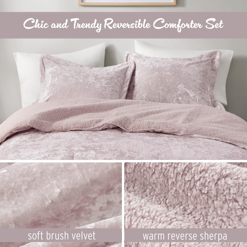Intelligent Design Queen Comforter Set, Reversible Velvet Comforter Set, Soft & Warm Sherpa Reverse, Winter Fluffy Comforter Bed Set with 2 Shams, Mira, Full/Queen Lavender 3 Piece