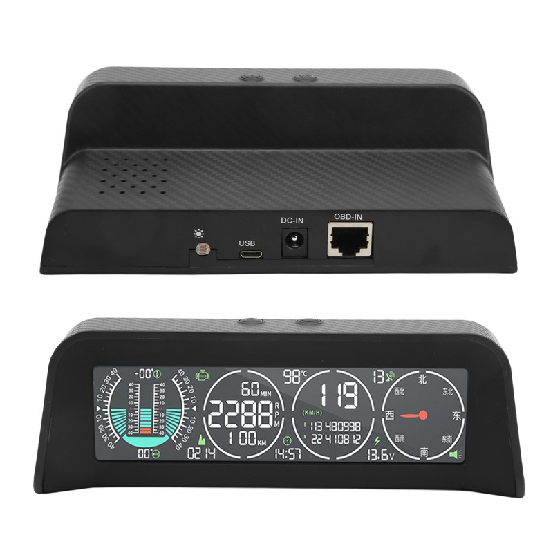 1、OBD Interface: The GPS HUD adopts color HD LCD screen display with high resolution, supports 9 OBD protocols, can be connected to your car OBD interface to read the real time data output by the ECU. 2、Dual Channel Module: The multifunction GPS OBD HUD can obtain the satellite signal data though the GPS and for Beidou satellite dual channel module, the dual signal is more stable. 3、Safe Driving: The HUD display adopt HD display screen for dazzling and clear effect, you can drive without bowing your head to pay attention to vehicle dynamics at any time, more secure to drive. 4、Adjustable Screen Brightness: The carbon fiber style HUD Monitor adopts light source sensor to sense the light so as to adjust the screen brightness, freely rotating and high sensitivity. 5、Intelligent to Use: The intelligent HUD display can start with the car to show the working environment and technical indicators, and it also features the automatic sleep function when parking.