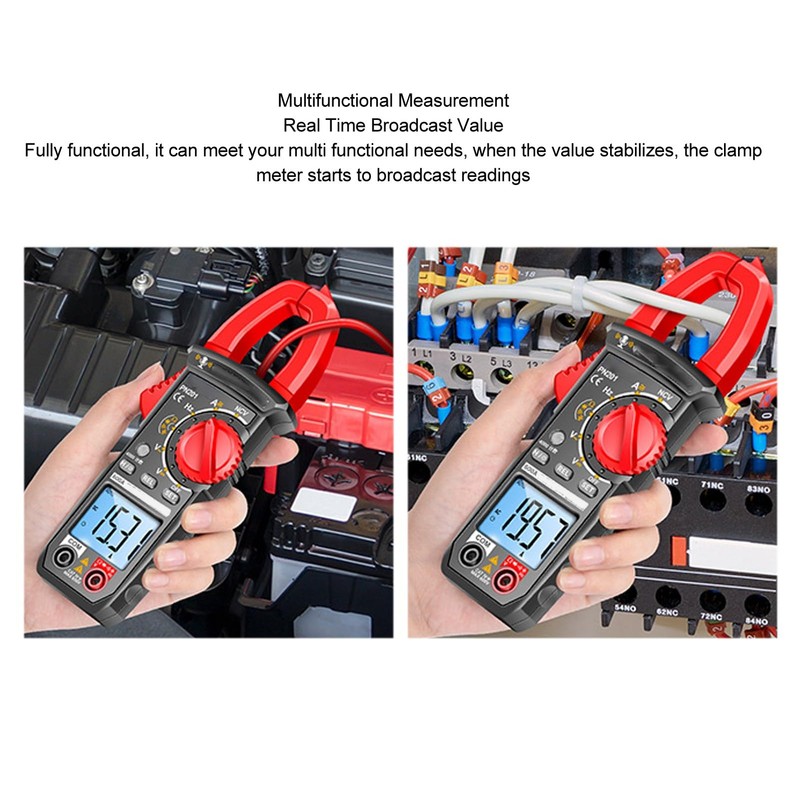 - [Intelligent Voice Prompt] The clamp meter features an English voice prompt that announces the measured values. With this feature, users can conveniently operate the meter without needing to look at the screen.