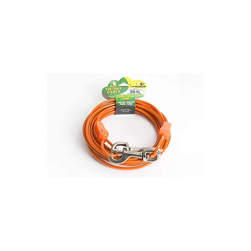 - 30 feet long, flexible and strong dog tie-out cable for large dogs up to 125 pounds. Many sizes available in different lengths and weights to ensure the perfect cable for any dog.
