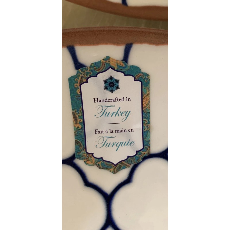 Each piece of this dinner set is microwave and dishwasher safe, making it convenient for everyday use. Whether you're enjoying a family dinner or hosting a dinner party, this set is sure to impress your guests. The Intensa Home blue Morrocan Pattern Embossed Dinner & Salad Plate, pasta & cereal Bowl set is made in Turkey and features a shiny finish.