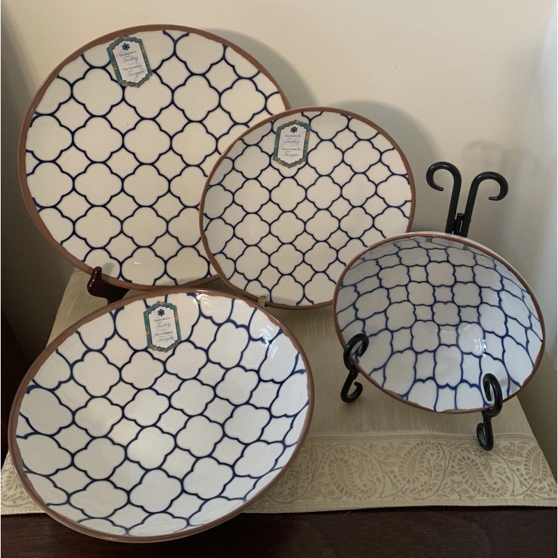 Intensa Home Dishes Morrocan Pattern Embossed Dinner & Salad Plate Lrg & Sm Bowl