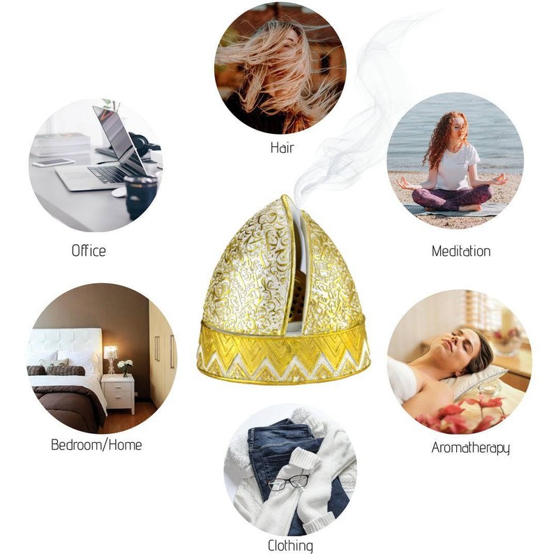 Intense Oud Calligraphy Arched Beehive Dome Style Closed Incense Bakhoor Burner - White