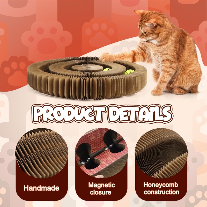 - High-quality material: the magic cat scratching board is made of high-quality, the honeycomb encryption is thickened, dense seams, strong and durable, can withstand aggressive scratches. Cat scratching toys are non-toxic and safe, scratch-resistant, wear-resistant, not easy to deform, will not hurt your cat's paws.