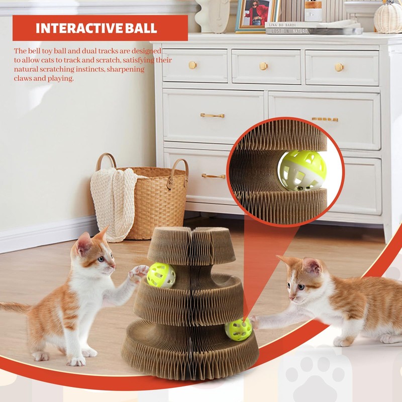 - Kitten toy: Your cats will show their interest in this cat toy ball and have fun with it that keeps your cat mentally and physically active. At the same time, the cardboard cat scratching board can be freely transformed into a variety of shapes to satisfy the cat's curiosity and desire to explore new things.