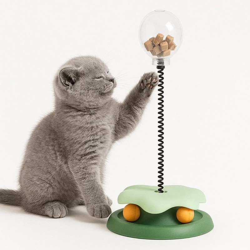 - 🐾 3-in-1 Interactive Cat Toy – Combines a bouncing spring teaser, rolling base, and treat dispenser to keep your cat engaged, active, and mentally stimulated.
